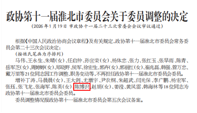 1月19日,经淮北市政协十一届二十三次常委会会议审议通过,买球官网英语教研室教师、九三学社社员陈博识增补为政协第十一届淮北市委员会委员