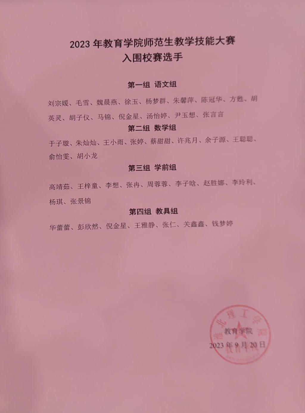 2023年外围买球的app十大平台师范生教学技能大赛入围校赛名单公示