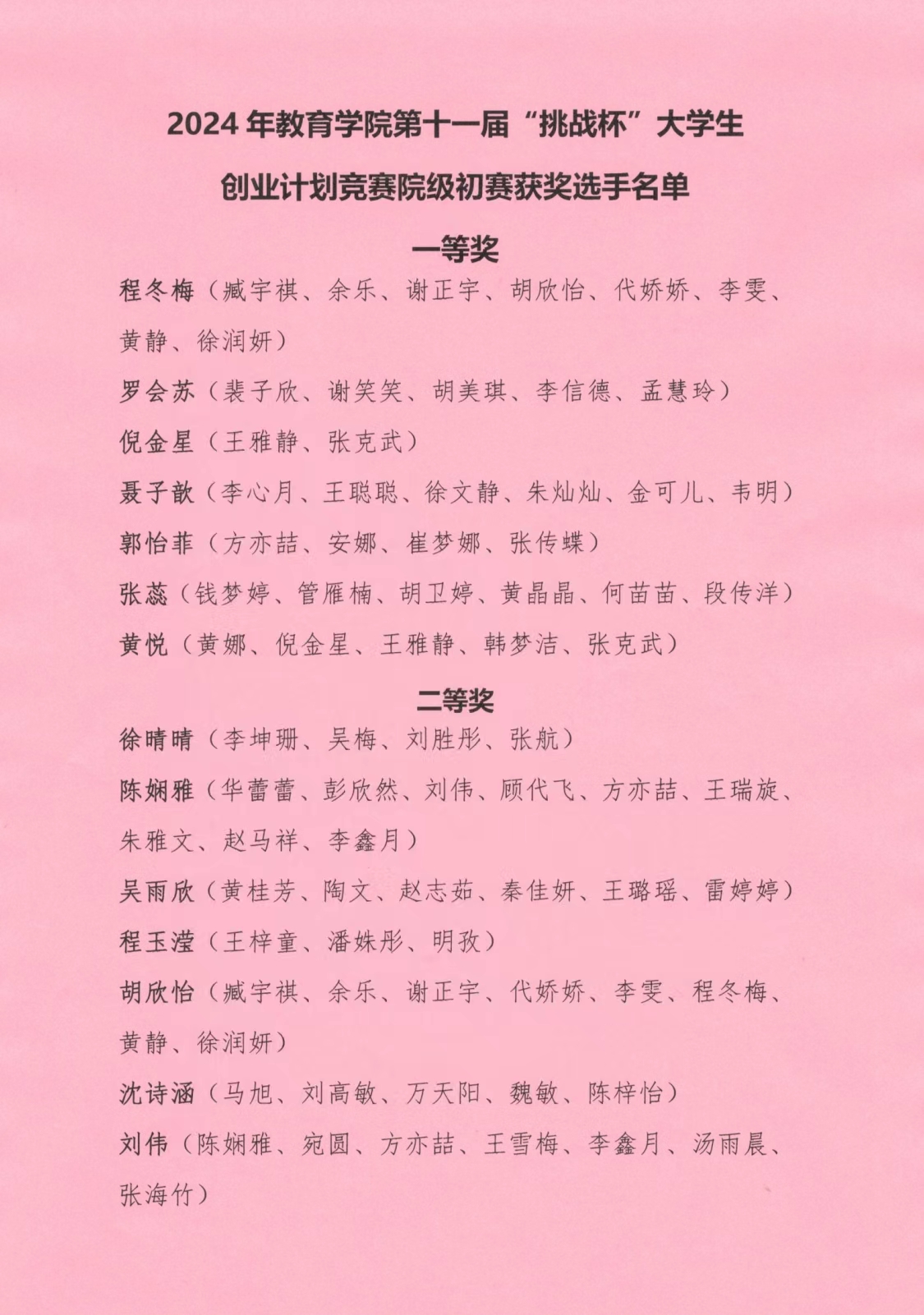 2024年外围买球的app十大平台第十一届“挑战杯”大学生创业计划竞赛院级初赛获奖选手名单