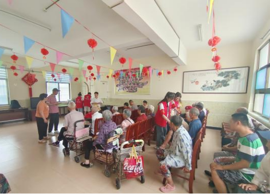 他们陪老人们聊天、讲故事,给老人按摩,并且为他们表演了歌舞,欢声笑语、其乐融融,共同描绘着敬老院内温馨和谐的美好画面。