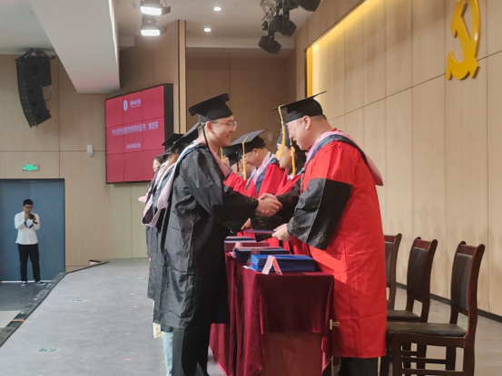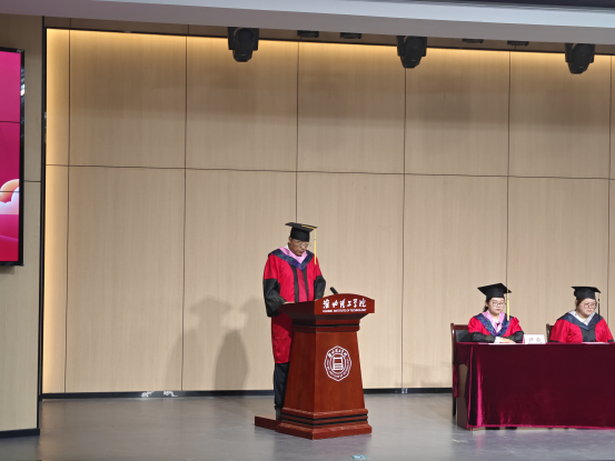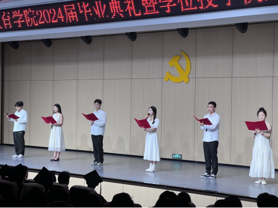 毕业典礼在雄壮的国歌声中拉开帷幕,副院长谢贤德宣读了《外围买球的app十大平台2024届本科毕业生学士学位授予决定》后,出席仪式的领导和教研室主任分别为毕业生代表颁发学历、学位证书,并进行拨穗正冠与合影留念。