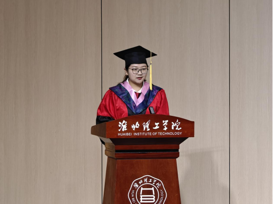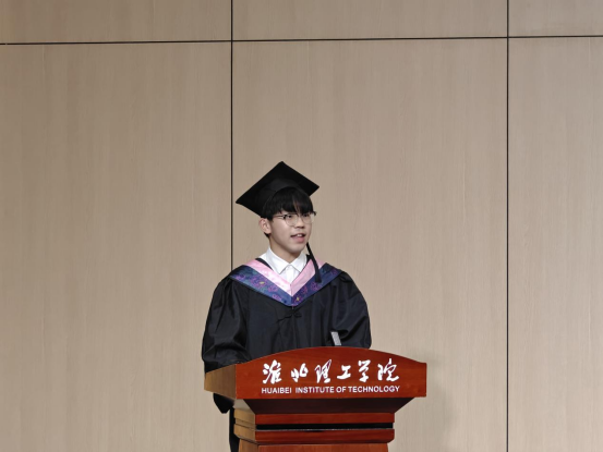 接着,尹爽老师作为教师代表上台发言。她回顾了两年来与同学们共同度过的美好时光,她衷心祝贺同学们顺利完成本科学业,并希望大家毕业后继续保持学习的热情和探究精神,以积极乐观的态度勇敢迎接未知与挑战,并能够积极承担社会责任,不断实现自我价值。