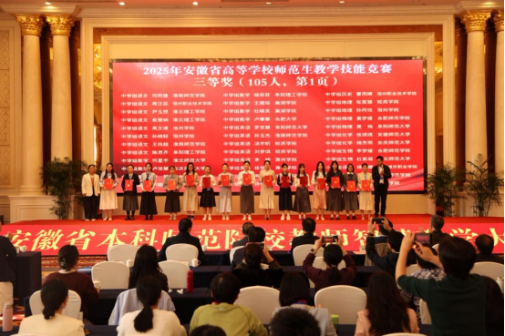 11月2日下午,由安徽省教育厅主办、合肥师范学院承办、安徽省高等院校教师教育合作委员会协办的“2025年安徽省高等学校师范生教学技能大赛”,在合肥师范学院滨湖校区圆满落幕。自7月14日启动筹备至赛事收官,买球官网历经111天的层层遴选与精心打磨,推荐13个学生(团队)代表学校出征省赛,最终12个参赛主体成功获奖。其中,一等奖2项、二等奖3项、三等奖6项、优胜奖1项。