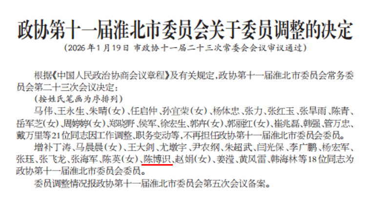 1月19日,经淮北市政协十一届二十三次常委会会议审议通过,买球官网英语教研室教师、九三学社社员陈博识增补为政协第十一届淮北市委员会委员。