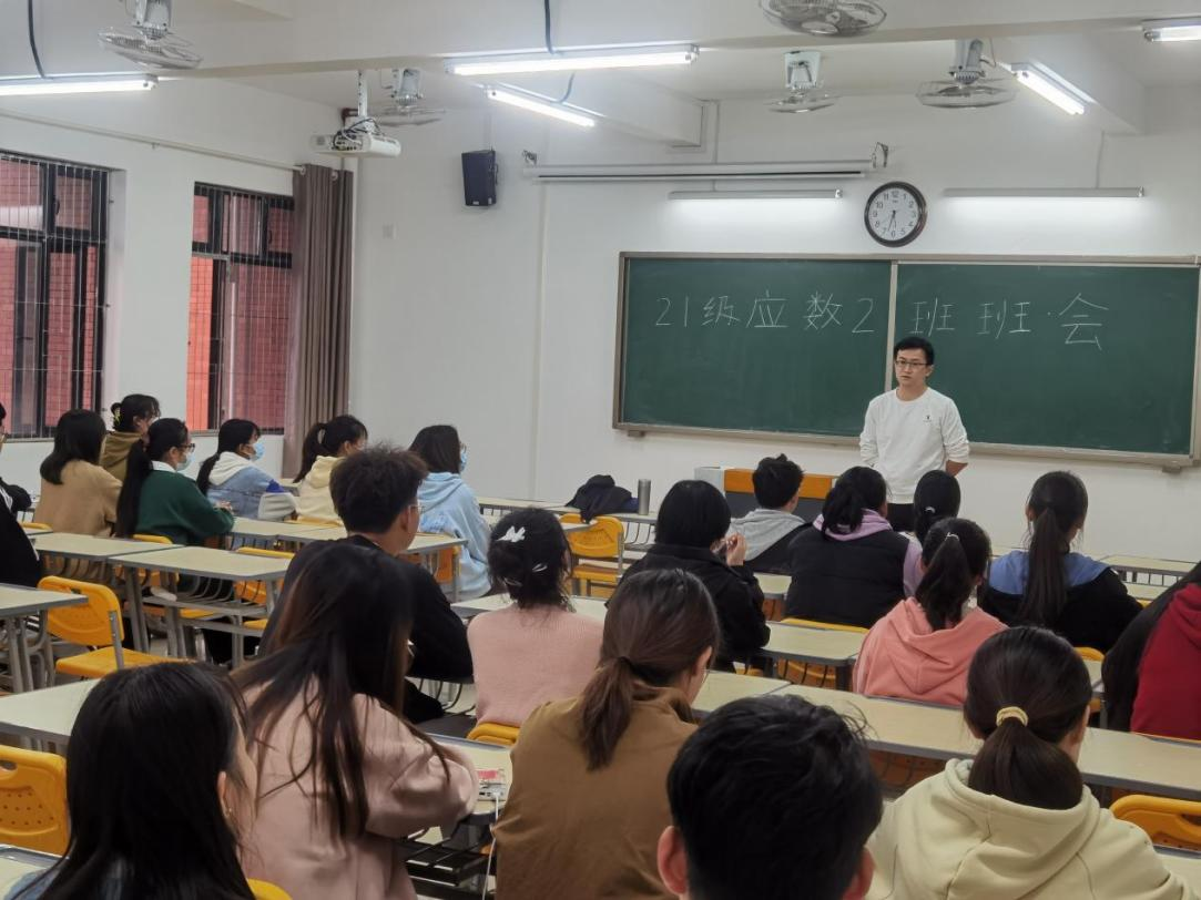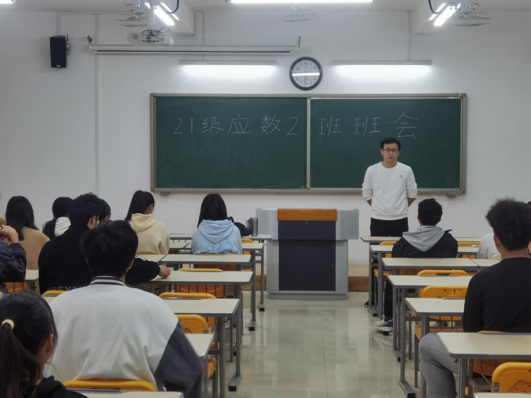 为进一步加强班级管理和学风建设,营造优良学风、团结奋进的班级氛围。我校外围买球的app十大平台2021级数学与应用数学(2)班于2022年10月13日在二教309教室召开新学期主题班会,由班主任檀雷雷老师主持,应数2班全体成员参加。