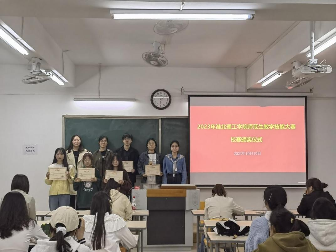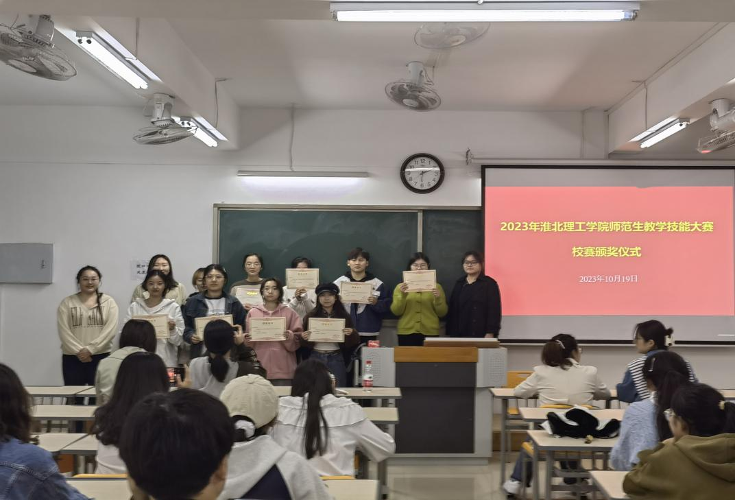 10月19日晚,买球官网在2号教学楼323举行2023年师范生教学技能大赛校赛颁奖仪式。外围买球的app十大平台书记助理黄莹莹老师,数学与应用数学教研室主任仇恒方老师,副主任李姜悦老师,学前教育教研室主任尹爽老师,副主任郗佩佳老师,学前教育教研室邵和君老师以及36名获奖选手参加了颁奖仪式,仪式由外围买球的app十大平台院长助理王伟杰老师主持。