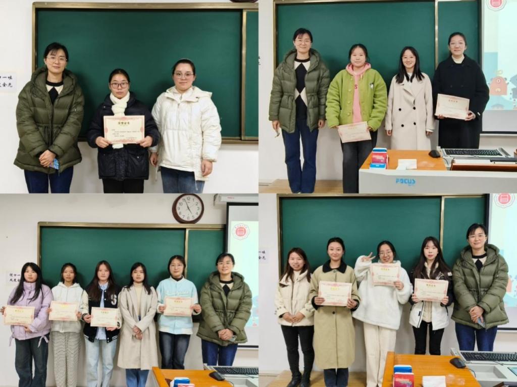 本次比赛先后进行了初赛和决赛,通过层层筛选,评出潘青青,杜雯静同学的《宝宝巴士》荣获一等奖;林池,张嘉琳等同学的《my book 教具书》、林飞杨,史文静等同学的《送动物宝宝回家》荣获二等奖;迟雪萍,陈溢慧等同学的《小心陷阱》、杨文艳,廖珍洁等同学的《乐智屋》、贺南,黄炎等同学的《旋转的魔方》荣获三等奖;陈佳格,常茹茹等同学的《益智接球器》、蒋诗雯,黄梓钰等同学的《疯狂的小鹿》、施国炜,刘春卞等同学的《台球碰碰》荣获优秀奖。比赛结束后,评委老师们为获奖同学进行颁奖,并向他们表示祝贺。
