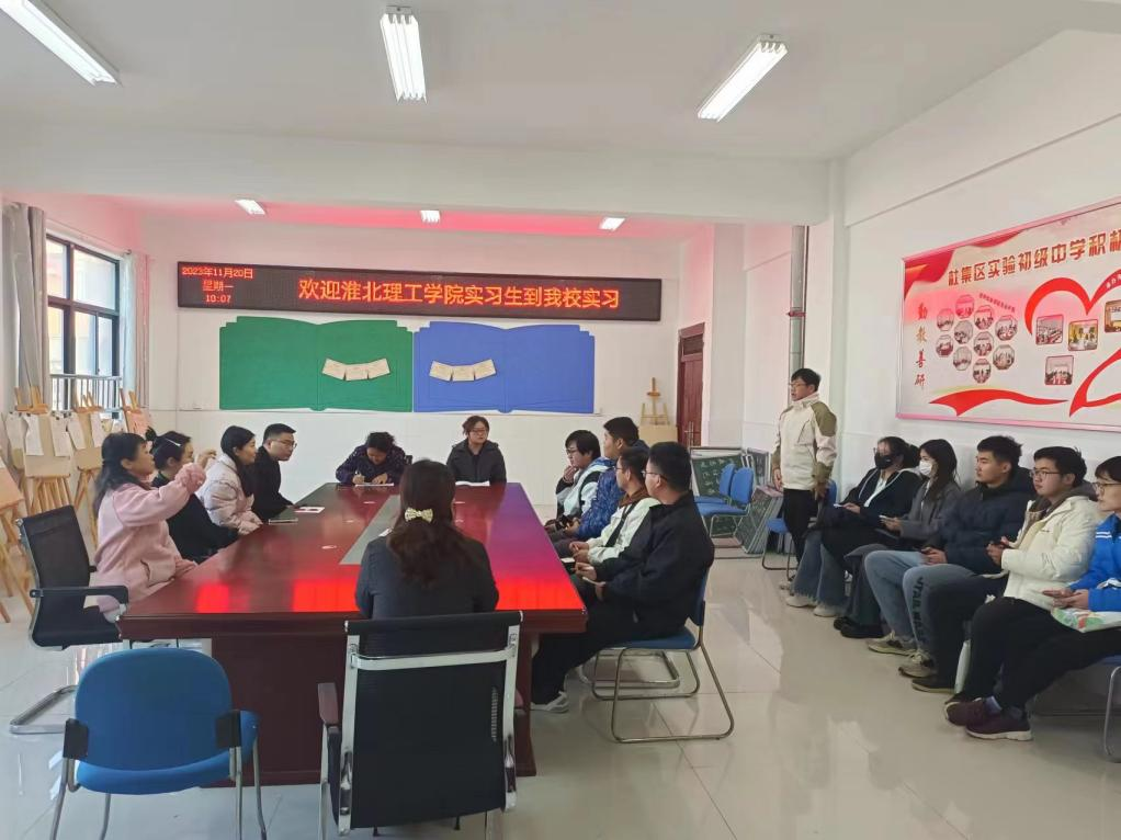 实习见面会上,雷主任和实习指导老师都对到校实习的10名实习生及带队老师表示热烈欢迎,并介绍了学校发展历史、教育教学成果、学校管理制度等情况。会议上,雷主任认真仔细地询问了每位实习学生的情况,在了解每位学生的特点后,为他们一一分配了指导老师,并对实习期间的注意事项做了详细的说明。雷主任强调,在实习期间,最主要最关键的任务便是课堂教学,实习生们应尽快转变身份,适应教师这个角色,认真做好每一件事,团结合作,勇于担当,虚心学习,因材施教,按照中学教师规章制度严格要求自己。为加快从学生向教师这一身份的转变,实习生们要认真听课,做好听课笔记,从指导老师的课堂中学习经验,将所学知识灵活运用到课堂教学实践中。最后,仇老师表示实习生们可以在课前进行说课,虚心听取指导老师的意见,及时调整授课内容,以达到更好的教学效果。同时,实习生们还应经常互相听课,与指导教师进行课后讨论,积极参加班级管理工作,交流心得,总结不足,反思自我。