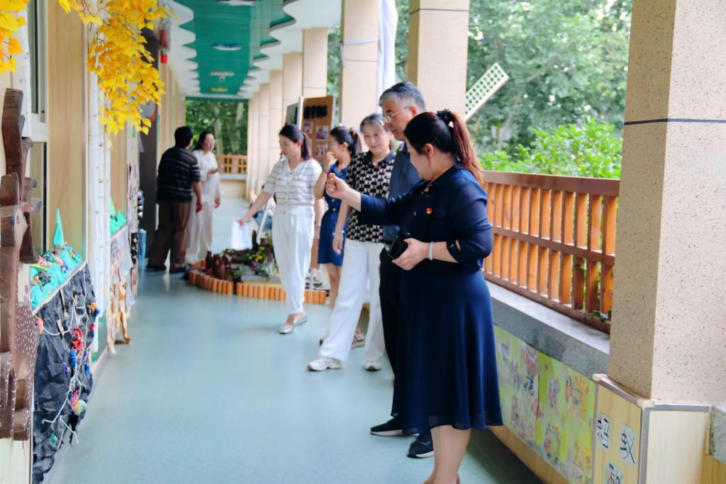 专家团队在周园长陪同下开展沉浸式调研:深入托班活动室,观察幼儿游戏化学习情境创设;重点检查食堂食品安全管理制度及操作流程;系统考察园所环境文化建设与课程可视化呈现。