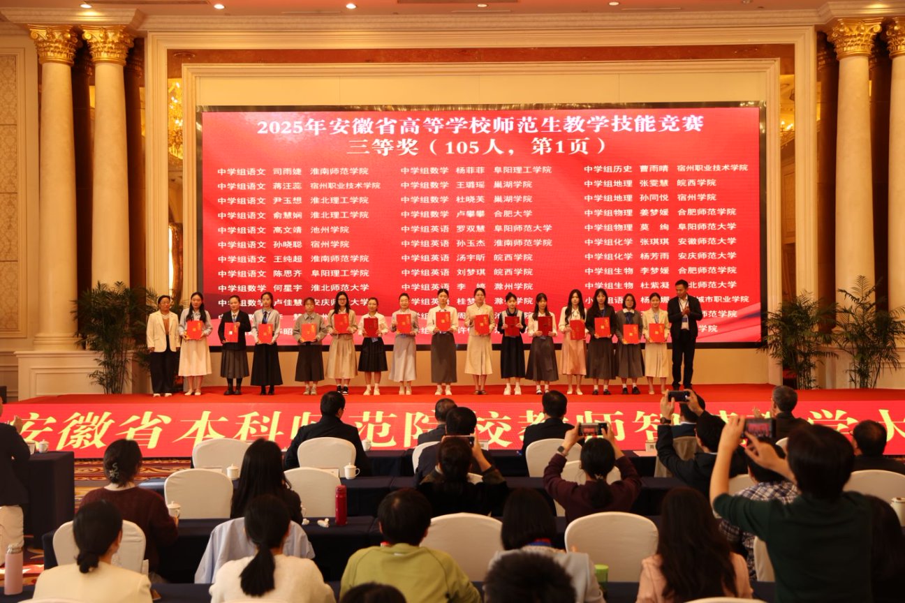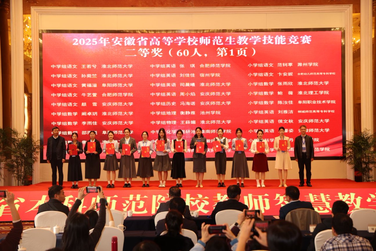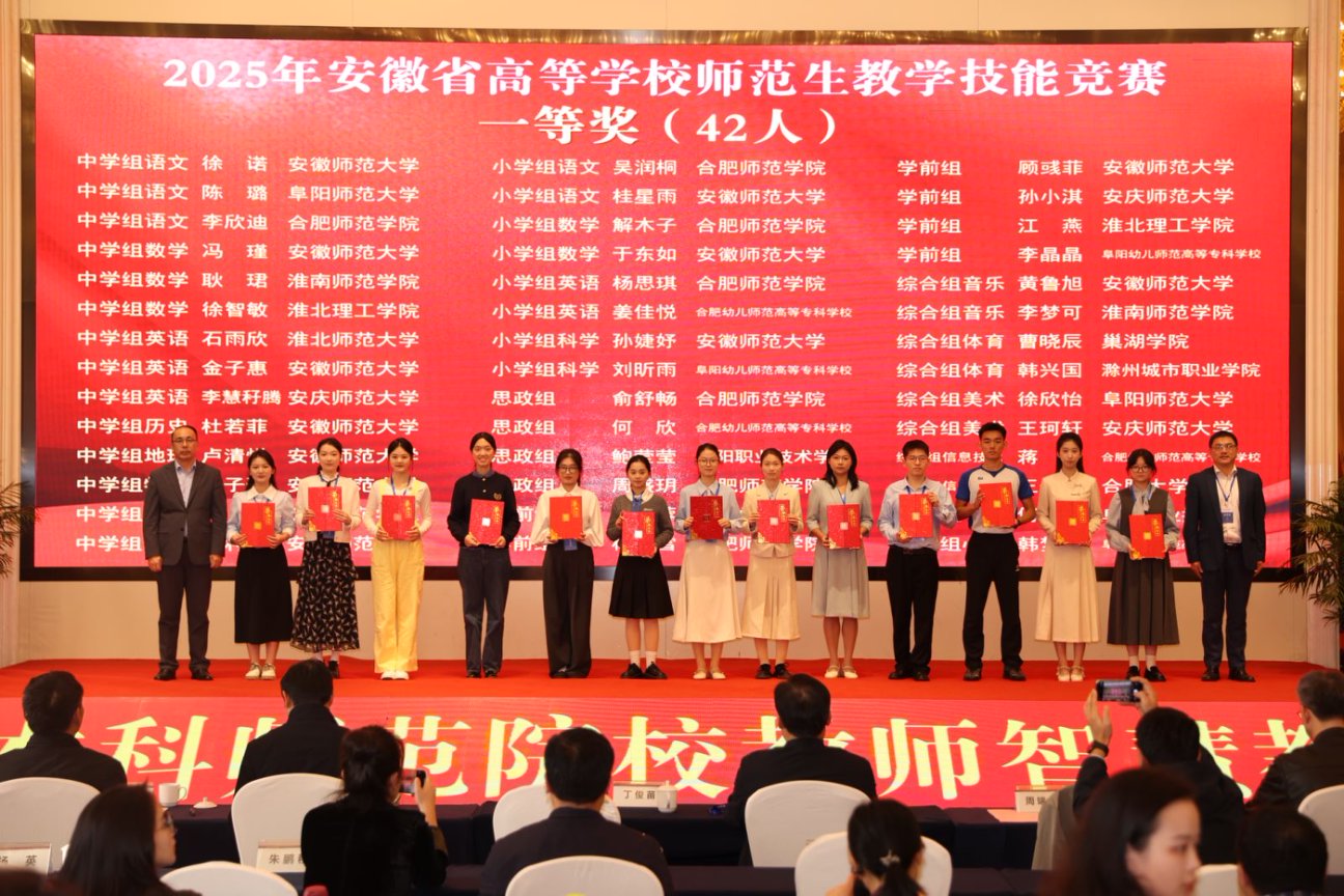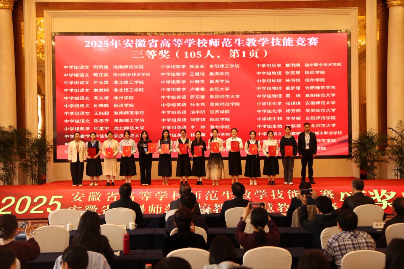 11月2日下午,由安徽省教育厅主办、合肥师范学院承办、安徽省高等院校教师教育合作委员会协办的“2025年安徽省高等学校师范生教学技能大赛”,在合肥师范学院滨湖校区圆满落幕。自7月14日启动筹备至赛事收官,买球官网历经111天的层层遴选与精心打磨,推荐13个学生(团队)代表学校出征省赛,最终12个参赛主体成功获奖。其中,一等奖2项、二等奖3项、三等奖6项、优胜奖1项。
