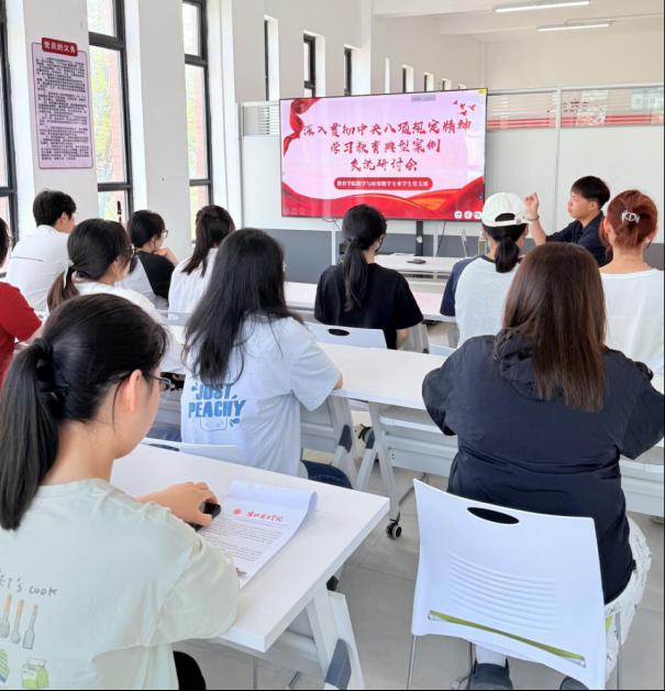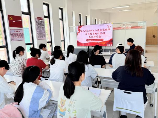活动中学生党围绕员们围绕深入贯彻中央八项规定精神学习教育展开了热烈讨论。学生党员代表丁洋表示:“作为新时代青年,我们要从细节入手,牢记勤俭节约、务实担当的作风,将八项规定精神内化于心、外化于行。”随后,郭鸿鑫老师带领同学们一起观看案例视频并举例模范毕业生党员事迹,要求2026届毕业生党员要充分发挥自身在班级带头作用,做好考研学风与实践就业工作,在自我提升中做好榜样引领。