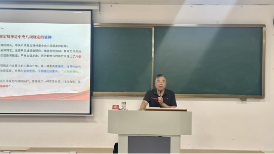 为深入贯彻中央八项规定精神,6月12日晚,外围买球的app十大平台在1教320教室组织开展学生党员、发展对象“深入贯彻中央八项规定精神”专题党课学习教育活动,学院党总支书记、院长王家云同志为参会的学生党员和发展对象授课。
