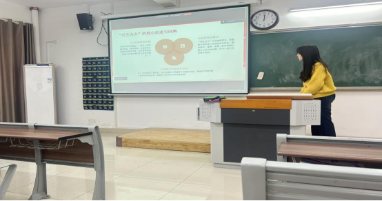 学习会上,学生党员李悦围绕《习近平谈治国理政》第五卷中的《中国式现代化,民生为大》一文,结合专题PPT进行领学。她从学习背景与核心意义、中国式现代化的本质底色、“民生为大”在具体行动中的落实、个人担当作为和目标与展望五个维度进行讲解,系统梳理了该篇目的理论框架与实践指向。《习近平谈治国理政》第五卷是全面系统反映习近平新时代中国特色社会主义思想最新成果的权威著作,为新时代治国理政提供理论指引。深入学习该文章有助于把握中国式现代化本质要求,为实际工作找准方向,凝聚为人民服务的共识与力量。