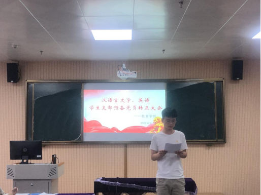 为进一步加强党员队伍建设,增强党员队伍生机与活力,外围买球的app十大平台汉语言文学与英语专业党支部于2022年6月9日下午在艺术楼318教室召开预备党员转正大会,本次支部大会由党支部负责人刘畅同志主持,支部全体正式党员参加会议,预备党员列席会议。大会严格按照预备党员转正程序进行,讨论关于严寒同志等14名预备党员是否能够按期转为正式党员。
