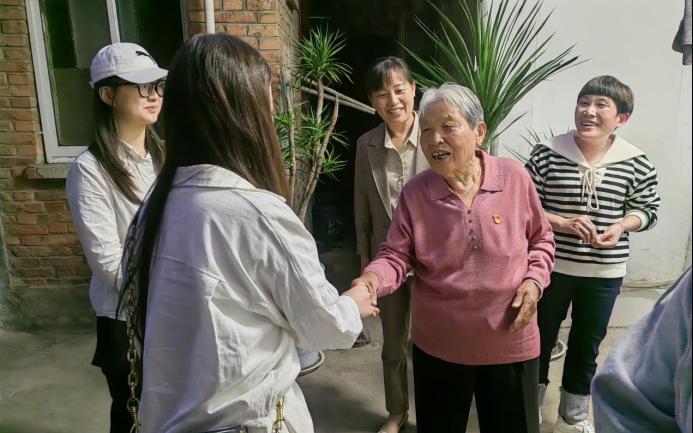 寻觅历史足迹,听老党员回忆峥嵘岁月。初见马素云老人,她笑意盈盈,精神矍铄。马素云是一位83岁的老党员,她在党59年,22岁就加入了中国共产党。马素云年轻时最早是在烈山区马桥公社担任妇联主任,负责22个大队、120个自然村的生产、妇女和征兵工作。马素云向来访的青年师生们讲述了她从一个普通青年成长为党的基层干部,为党的事业努力奋斗的经历。她在谈到自己是一名共产党员时,眼神里满是坚定和自信,让我们看到了一个共产党人对党的无限忠诚,对党的事业充满信心!她强调青年一代一定要树立坚定的理想信念。她讲述了自己在父亲的影响下,积极加入党组织,为党积极工作的故事。马素云的父亲是一名红军,年轻时跟随赵汇川将军,先后参加抗日游击队、新四军,英勇杀敌,保家卫国。她受父辈的感染,在烈山区马桥公社担任妇联主任期间,时刻牢记自己是一名共产党员,努力克服工作和生理上的种种困难。无论刮风下雨,还是大雪封门,骑着自行车走在各个大队和自然村之间,常常要很晚才能回到住地。这对于一个年轻的姑娘来说,实属不易。参加访谈的青年党员们都为她的精神所感动,她说:“共产党员就应该为人民服务”。
