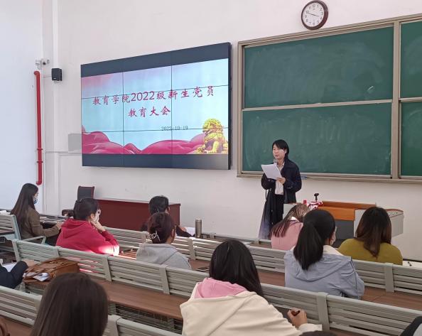 2022年10月19日下午,外围买球的app十大平台在1教121教室召开新生党员教育大会。学院分管副书记孟向红、2022级全体辅导员以及全体新生党员参加了会议,会议由学生支部书记任若晨主持。