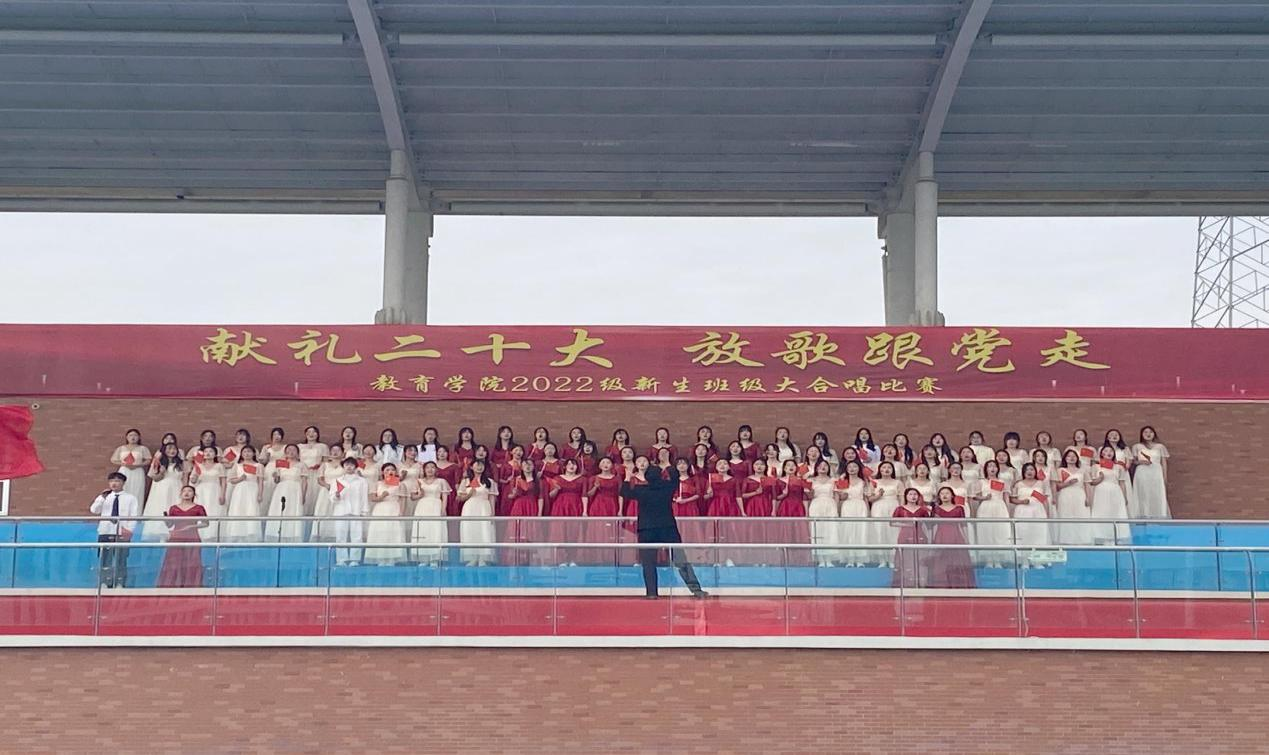 在全国上下认真学习贯彻党的二十大精神之际,外围买球的app十大平台为坚定青年大学生永远跟党走的理想和信念,引导学生赓续红色血脉,厚植爱国情怀,于11月6日上午在校户外操场举办了“献礼二十大,放歌跟党走”2022级新生班级大合唱比赛,莅临比赛现场的有学校副校长汪建利、教务处处长陈国平、后勤保卫处处长程坚、办公室副主任陈杰、外围买球的app十大平台院长王家云、副院长孟向红,校团委书记刘帅克、学生处老师、外围买球的app十大平台全体辅导员以及2022级49个班级的同学,学院2021级辅导员担任了本次大合唱比赛的评委。