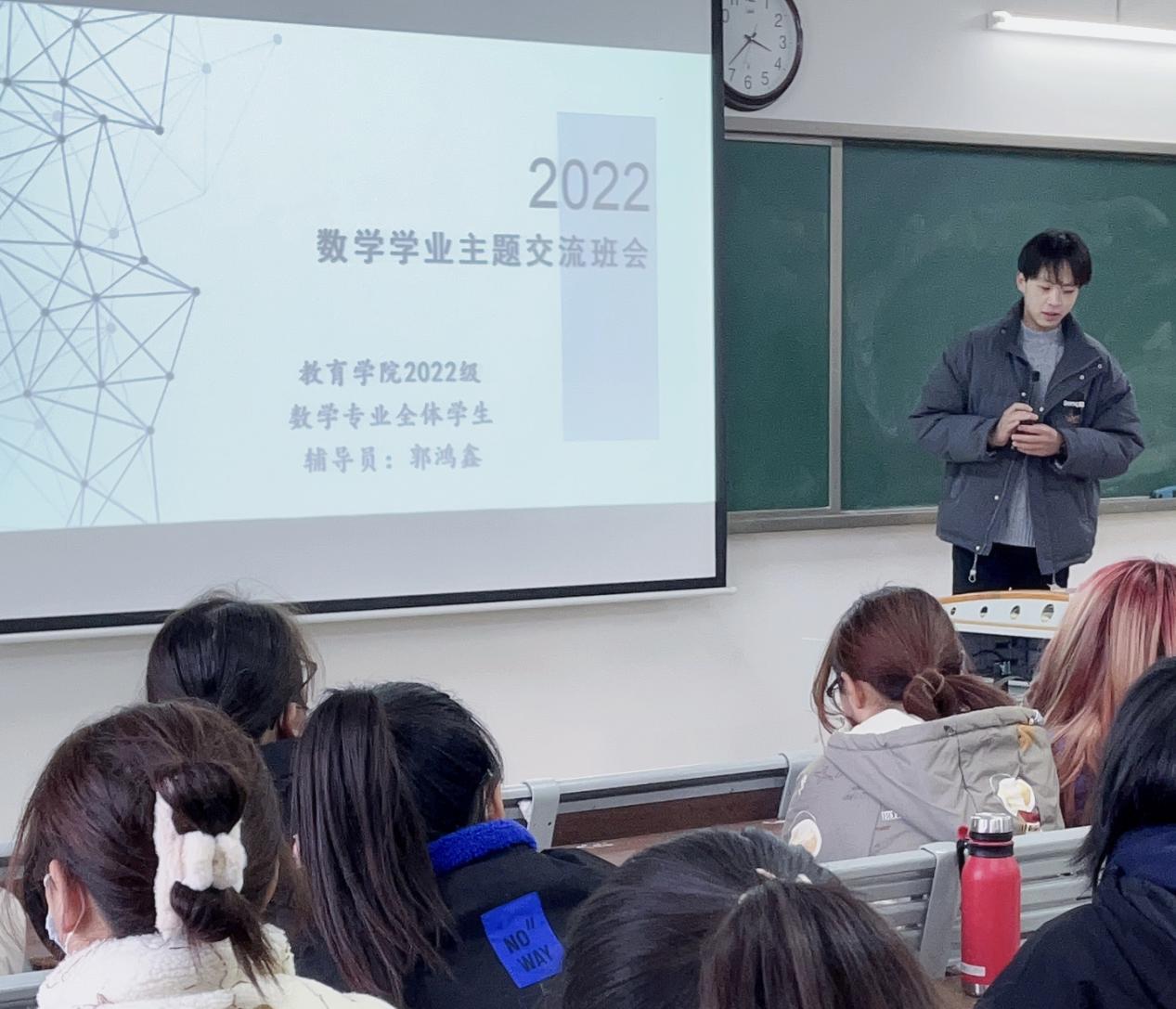 为激发同学们的学习兴趣,更加刻苦地钻研专业知识,坚定自己的职业方向,外围买球的app十大平台2022级数学与应用数学和汉语言文学专业共约400名学生于11月下旬分别在1号教学楼520、514等教室分别召开“聚焦学业主题班会”,会议分别由所带专业辅导员郭鸿鑫、李应华主持,他们针对各自专业特点向同学们讲解了关于教师资格证考试和期末巩固复习的相关内容。