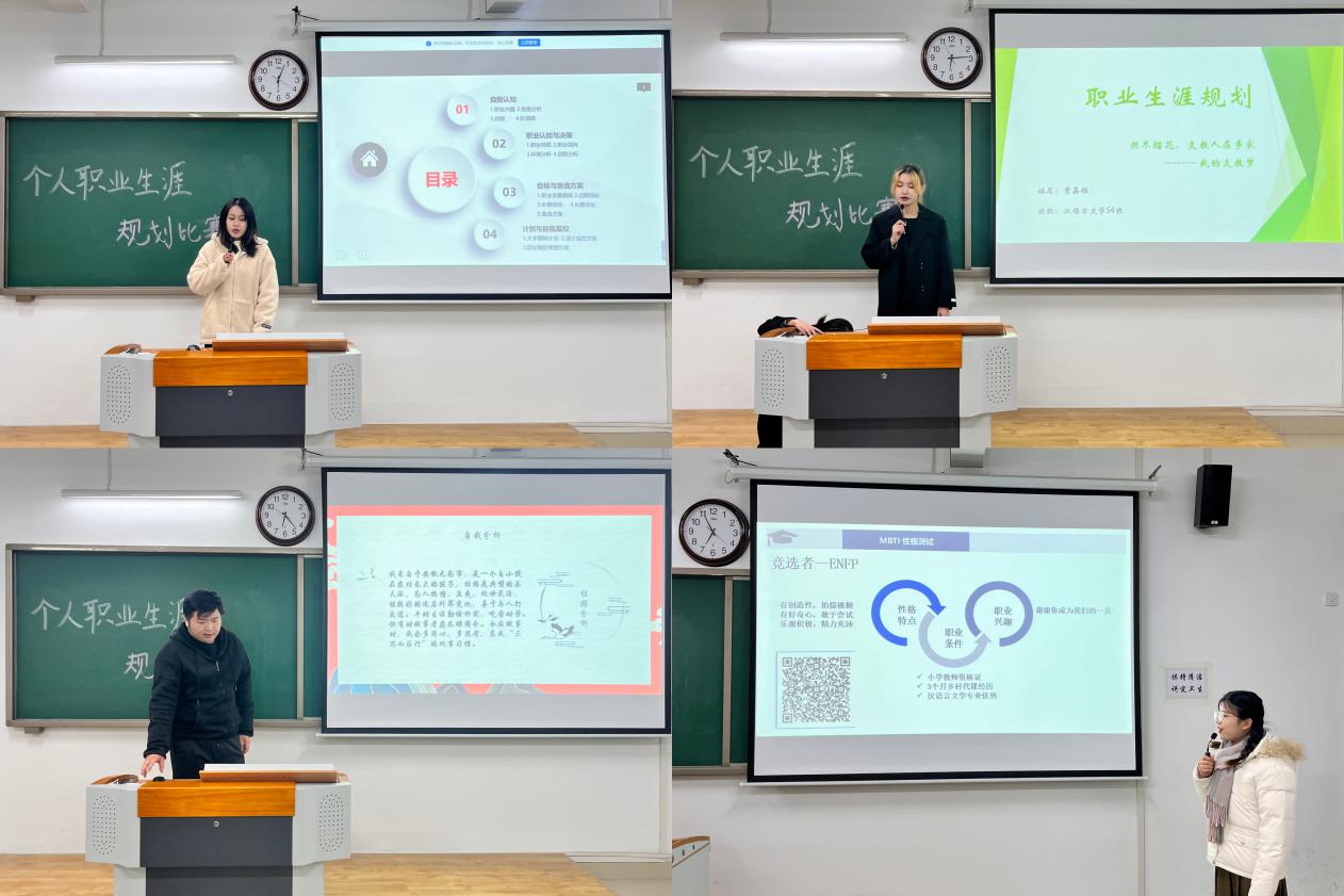 为落实立德树人根本任务,发挥“以赛促学、以赛促教”的积极作用,进一步深化大学生职业生涯规划和创新创业教育,提升大学生职业生涯规划能力,为未来职业发展奠定基础。外围买球的app十大平台自10月中旬以来在全体2022级专升本学生中开展了“职业生涯规划大赛”活动,活动得到了同学们的热情支持和广泛参与,参赛项目分职业规划类和创新创意类两类,经班级初赛后,最终共28个项目进入本次院级决赛。决赛于12月2日晚在1号教学楼413、414、415、416教室分组举行,各比赛小组评委由辅导员老师担任。