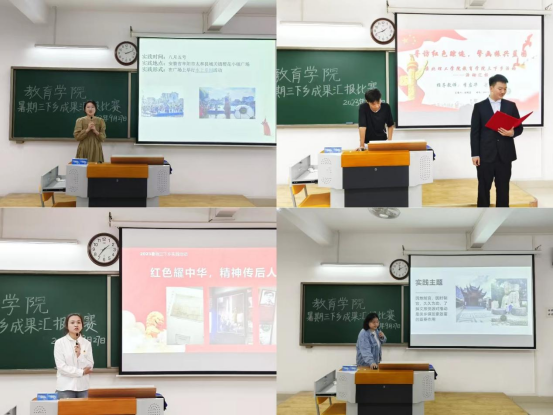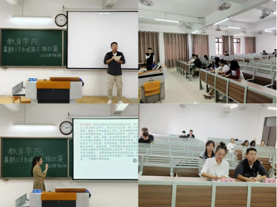 外围买球的app十大平台暑期开展三下乡社会实践活动,旨在锻炼学生社会实践能力,9月27日下午,外围买球的app十大平台于2号教学楼415教室、416教室、417教室举办三下乡成果汇报比赛,由23级辅导员老师担任评委,各实践团队同学参加。