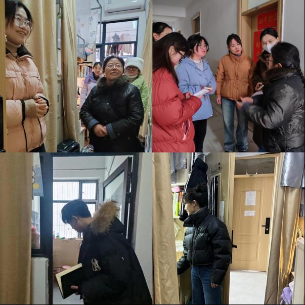 辅导员老师们走进学生宿舍与同学们亲切交谈,了解同学们假期的生活感受、倾听同学们新学期的所思所想,多数同学表示新学期要以新的姿态投入到学习生活中,要让自己的校园生活紧张而充实起来,部分同学还与老师们一起分享了假期参加社会实践和志愿服务的体会和所获得荣誉。在走访中,辅导员老师们全面地了解同学们的生活、学习、心理情况,告知同学们,要将宿舍门上张贴的“文明寝室创建标准”内化为同学们的自觉行动,提醒学生要注意安全,不断提升自己的安全意识,尤其是注意宿舍消防安全,禁止使用大功率电器和违禁物品,在宿舍禁止明火,同时室友之间要相互提醒防范电信网络诈骗。并嘱咐同学们要养成良好的生活、卫生习惯,相互之间要友爱互助,重视安全卫生,树立优良寝风,尽快投入学习,适应新学期生活。