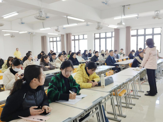 会上,黄莹莹肯定了班主任老师们协助辅导员老师在学生日常教育管理工作的付出与努力,经常性深入学生寝室、学生班级,指导学生学业、考公、考编、考研、科技竞赛等,并介绍了买球官网近期学生工作开展情况:1、外围买球的app十大平台全体学生宿舍均张贴了信息门贴,便于辅导员和班主任深入学生宿舍精准了解他们的学习、生活状态;2、开学初学生思想动态调研和春季心理健康摸排工作均已完成,需要持续紧密关心关注重点学生群体,做好学生心理健康和安全教育工作;3、要结合学生专业特色开展学业规划指导工作,紧抓学风建设,帮助学生找到明确人生目标,为有考研、考公、入伍、求职等诉求的学生做好指导工作;4、挑战杯课外学术竞赛和学雷锋活动月正在进行中,此类竞赛活动要能够结合学生专业特色做好服务指导。她希望班主任老师们一如既往地与辅导员老师们共同做好学生的教育管理和学业指导工作。
