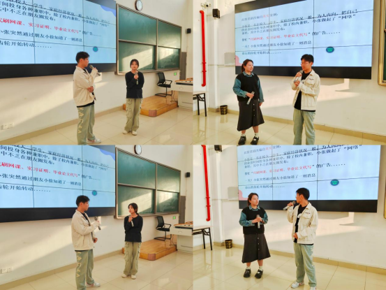 活动以同学身边发生的真实案例为模板,创作了情景剧《“倒霉”的小张》。参演的同学在老师指导下认真准备,以对话的形式讲述了在校学生小张兼职代刷网课,在网络上宣传代开实习证明、代写毕业论文等不实广告信息,最终被人举报至学校,经调查后批评教育处分的故事。