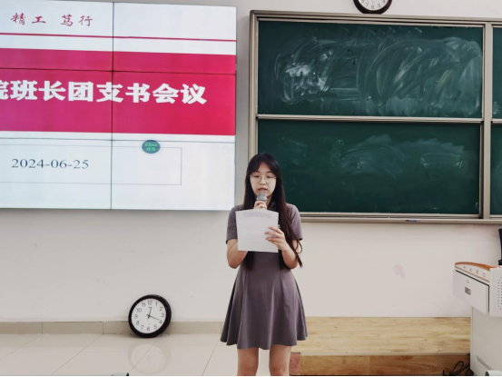 22级英语3班班长张克武、23级汉文8班团支书王雨露分别在会上做了交流发言,分享了班级和团支部的工作经验。