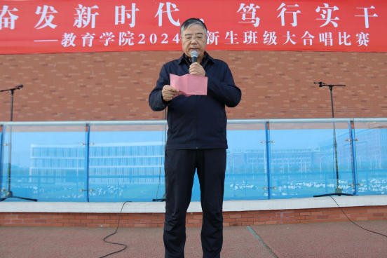 院长王家云为比赛致辞。他说,新生大合唱是买球官网最重要的集体活动之一,从2021年学校创办以来开始举办,至今已经是第四届,举办大合唱就是要凝聚同学们的爱国情、熔铸同学们的淮理心、点燃同学们的奋斗志、汇聚同学们的勤奋力、助力同学们的的明天梦,“踔厉奋发新时代,笃行实干谱新篇”不仅是本次活动的主题,也是对每位同学的勉励和期望,希望同学们用歌声展现爱国主义情怀和中华儿女的自信自强、守正创新的精神气象。