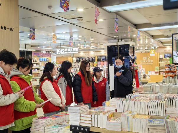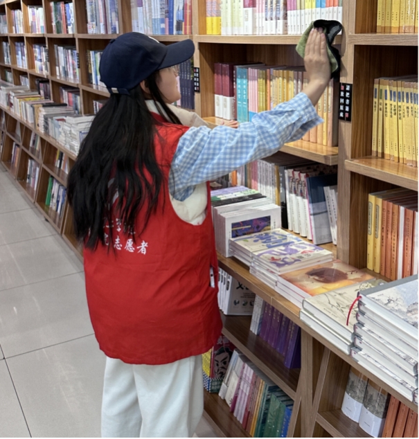 活动开始,志愿服务小队的成员们早早来到新华书店,与书店工作人员进行了简短的沟通后,迅速投入到志愿服务工作中。志愿者们分工明确,有的负责整理书架,将散乱的书籍分类归位,清理书架卫生;有的协助工作人员进行图书上架,确保读者能够快速找到所需书籍;还有的为前来购书的顾客提供导购服务,耐心解答他们的疑问。