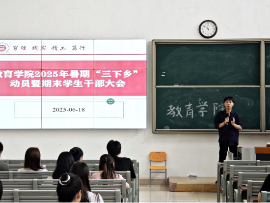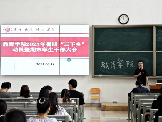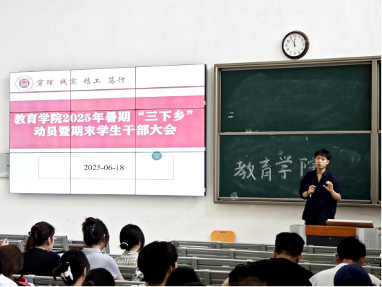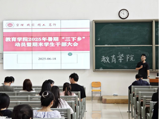 为落实学校《关于开展外围买球的app十大平台2025年大学生志愿者暑期文化科技卫生“三下乡”社会实践活动的通知》精神,确保大学生暑期“三下乡”社会实践工作顺利开展,引导广大青年学生在社会实践中受教育、长才干、作贡献。6月18日,外围买球的app十大平台在1号教学楼121教室召开2025年暑期“三下乡”动员暨期末学生干部大会。外围买球的app十大平台全体在校班级班长、团支书参与此次会议,会议由外围买球的app十大平台团总支书记许海涛主持。