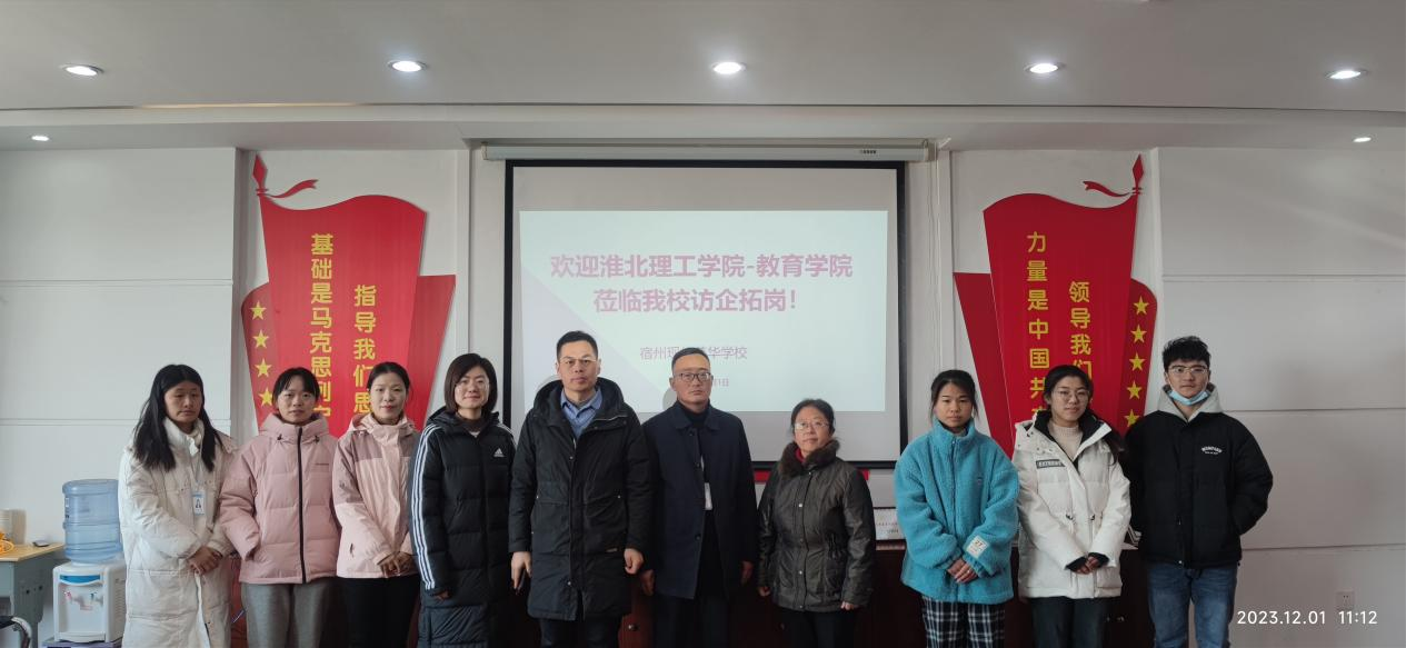 为了加强校地交流合作、拓展毕业生实习和就业渠道,12月1日,外围买球的app十大平台分管副书记孟向红、书记助理黄莹莹、团总支副书记许海涛、2024届毕业班辅导员任子慧,前往宿州现代英华学校开展访企拓岗调研活动。